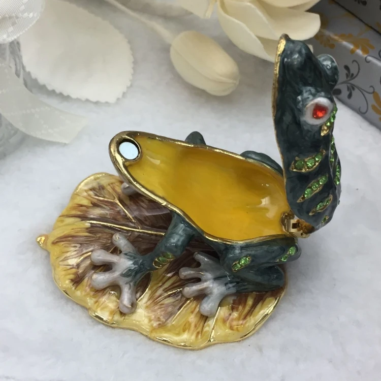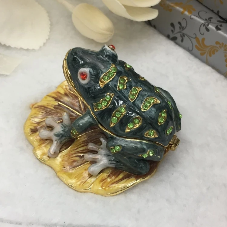 HOT Sale Hot Sale Dark Green Frog With Leaf Trinket Box Crystal Animal Figurine Souvenir Home Decoration Chr