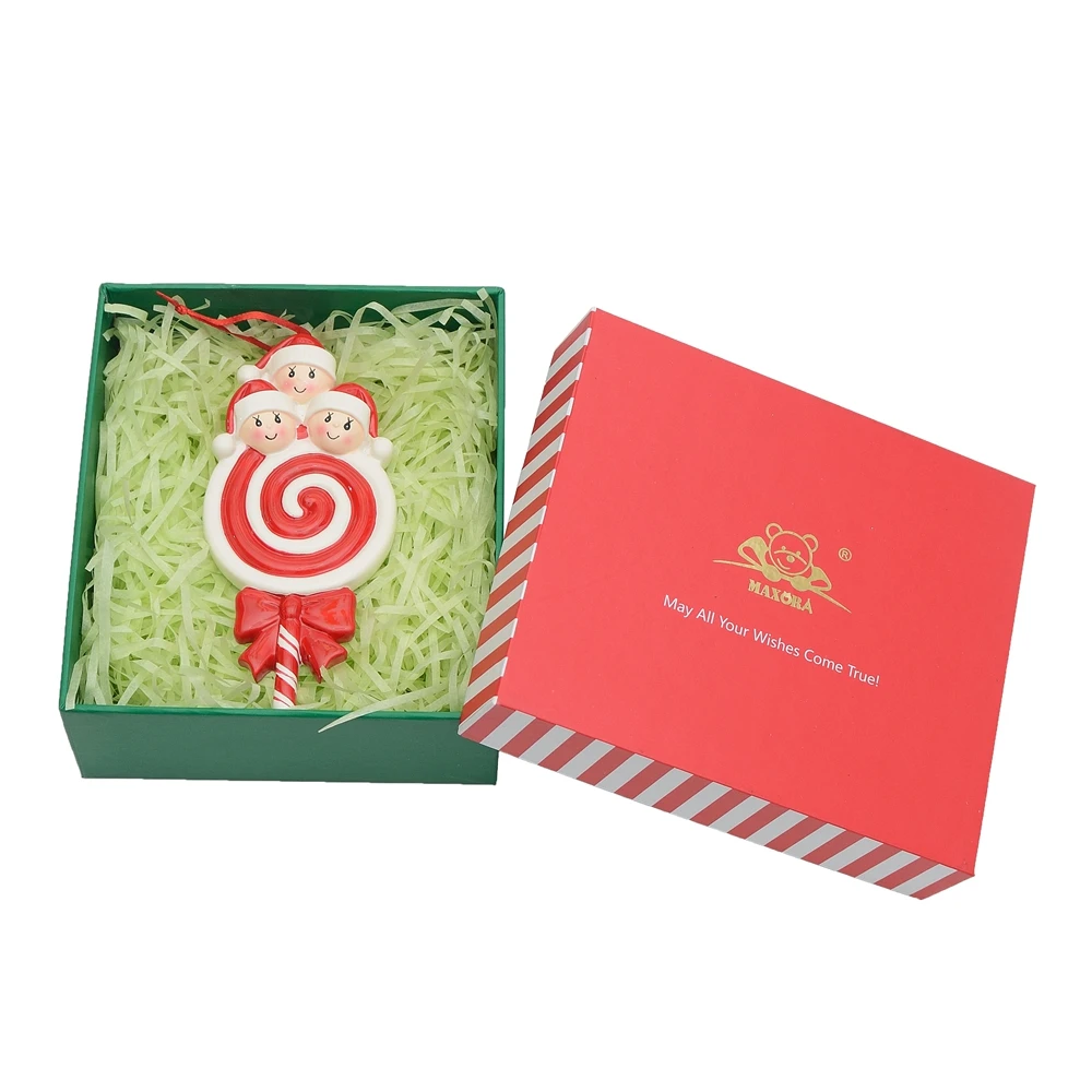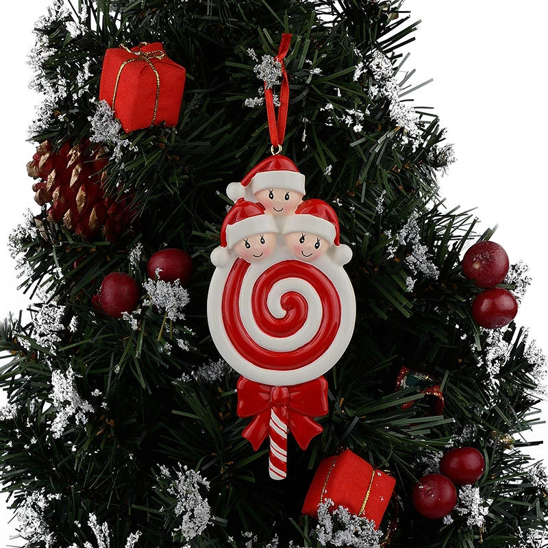 HIGH QUALITY Lollipop Family of 4 Resin Hang Christmas Ornaments With Glossy Baby Face As Craft Souvenir