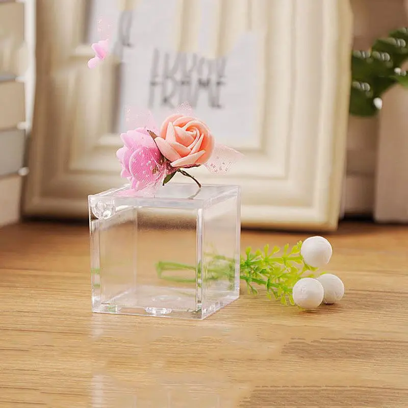 New 12pcs 6x6x6 cm Square Wedding Candy Box Plastic Clear Gift Box Transparent Favor Boxes Souvenir