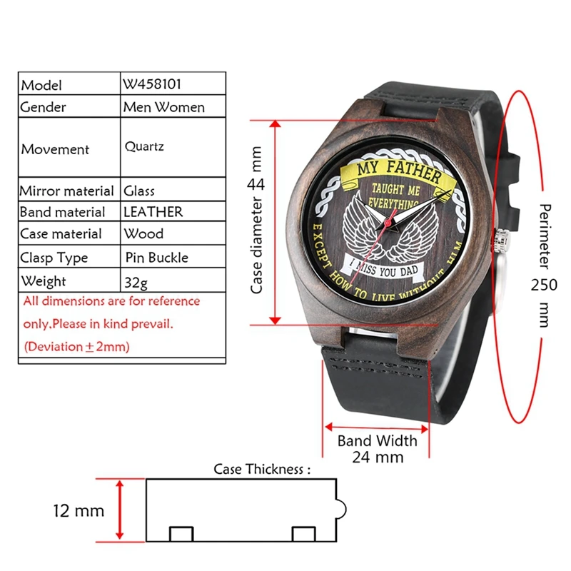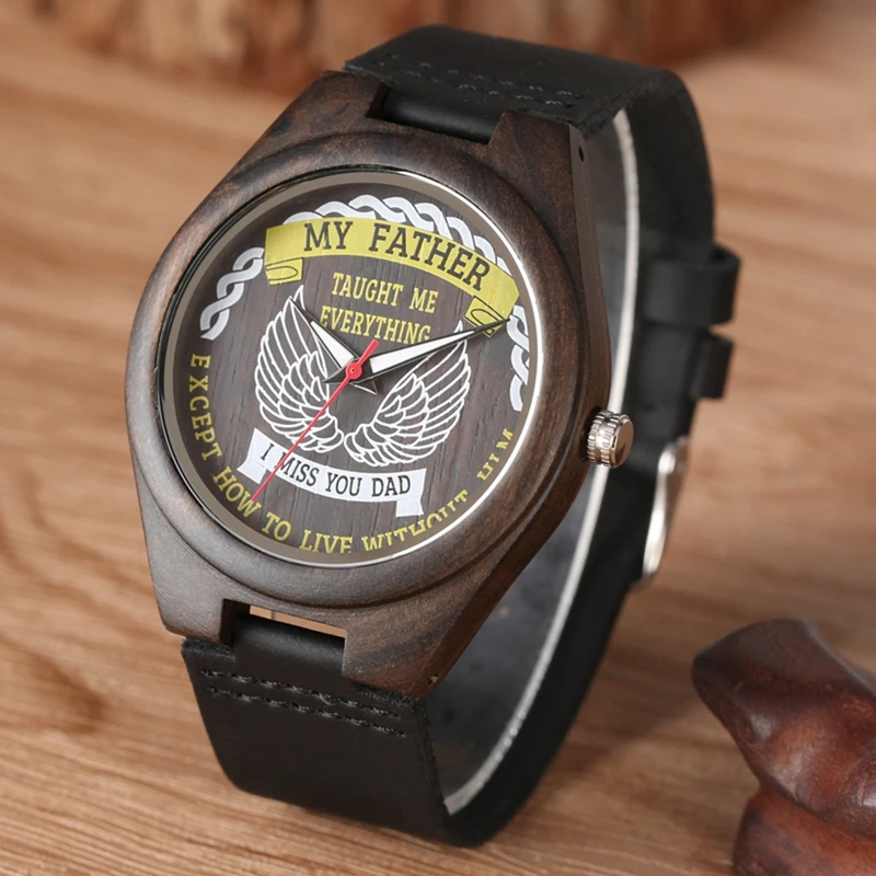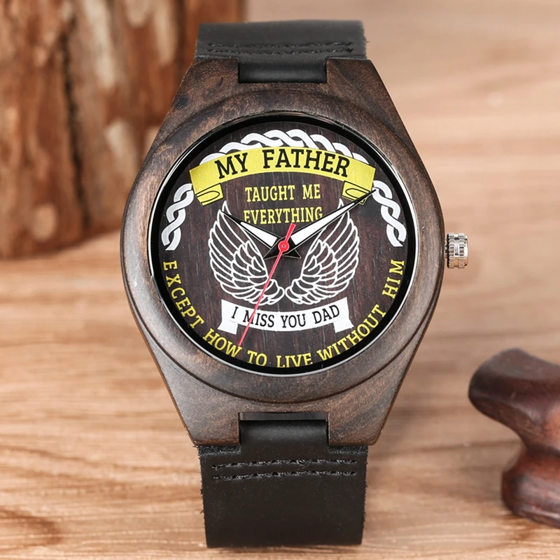 My Father Taught Me Everything Retro Wood Watch Mens Special Literal Series Dial Quartz Watch Luxur