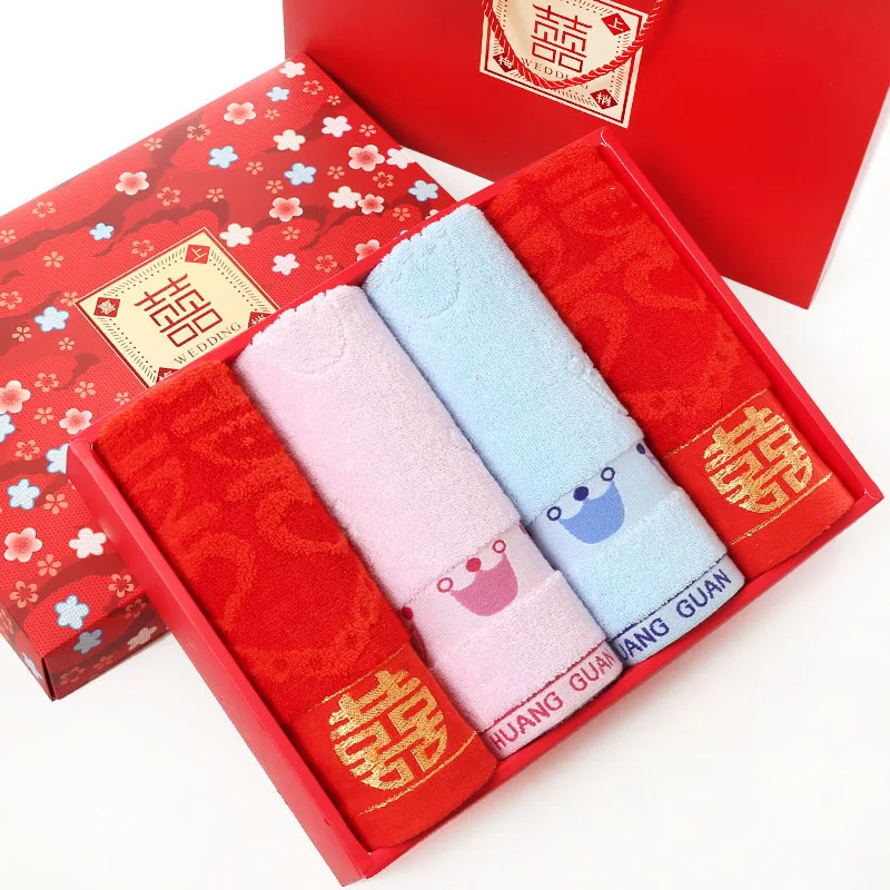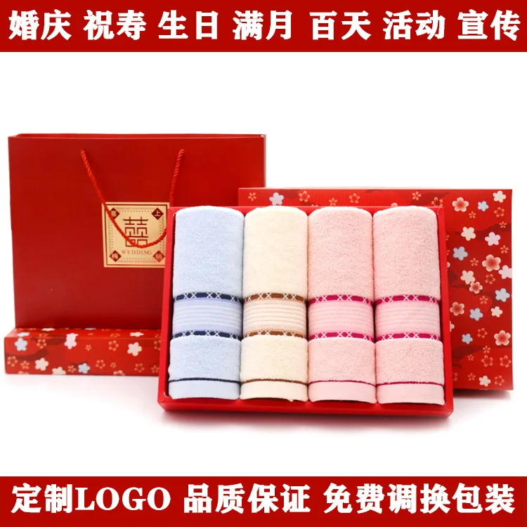 [Chen ri] Pure Cotton Towel Gift Box Set Pack of 4 Wedding Gift Return Souvenir Birthday over the L