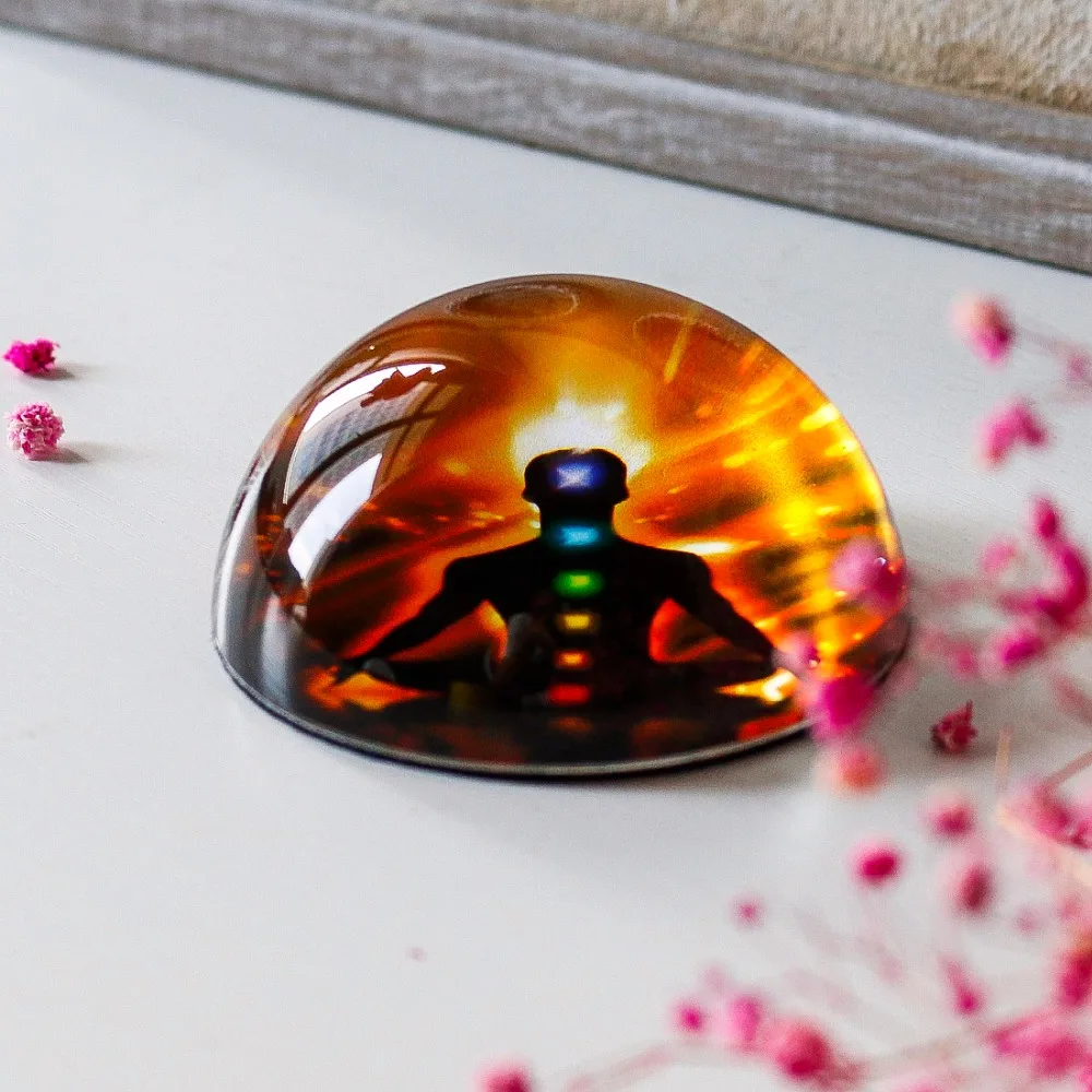 H&D 3inch Crystal Chakra Muladhar Semi Sphere Healing Crystals Half Ball Paperweight Yoga Chakra So