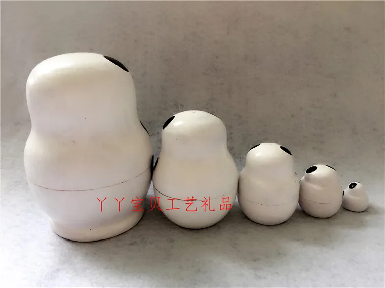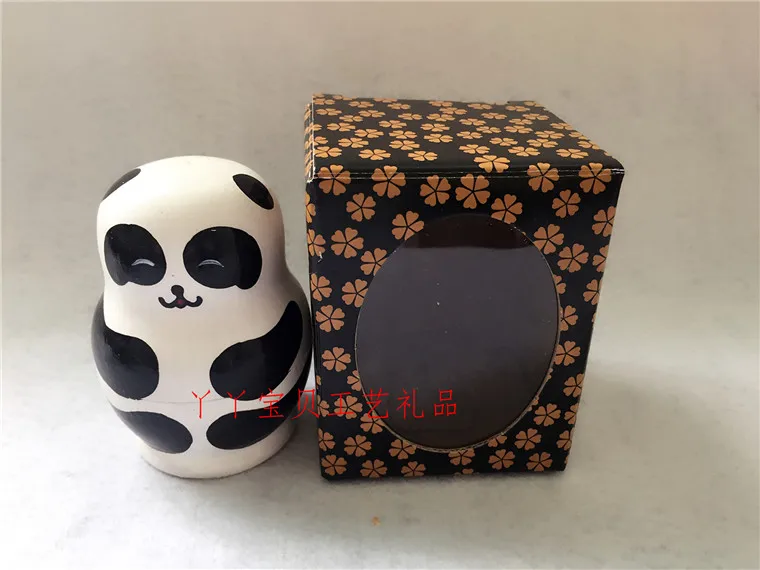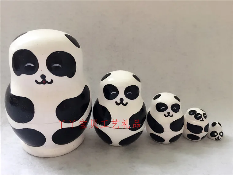 Matryoshka Panda 5 In 1 Wooden Russian Hand Painted Nesting Dolls Cartoon Handmade Souvenirs Toys b