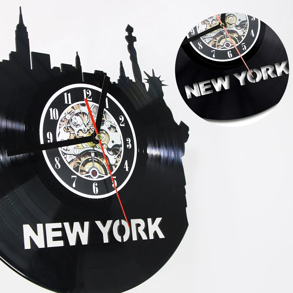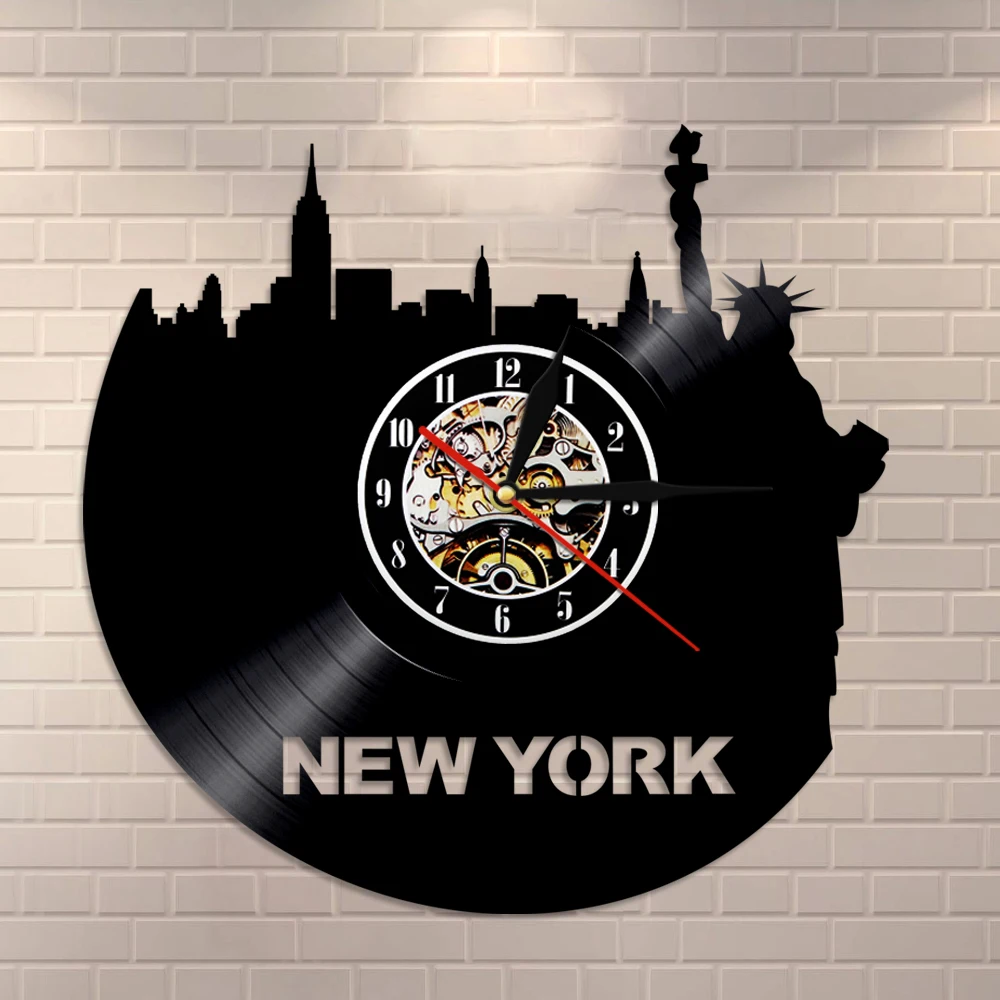 USA Modern Wall Clock New York City Skyline Vinyl Record Clock Travel Vintage LP Clock Statue of Li