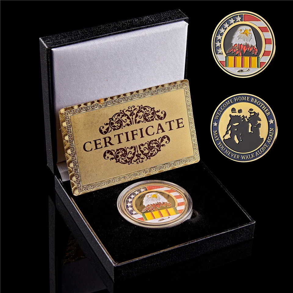 ORIGINAL 2019 USA Gold/Silver Challenge Souvenir Welcome Home Brother Military Token Coin W/Luxury Black Box