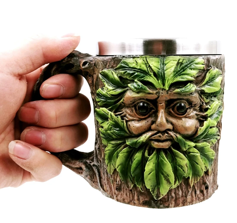 BEST Creative Green Tree Man Stainless Steel Handle Water Cups Milk Coffee Cups Travel Souvenirs Mugs Ho