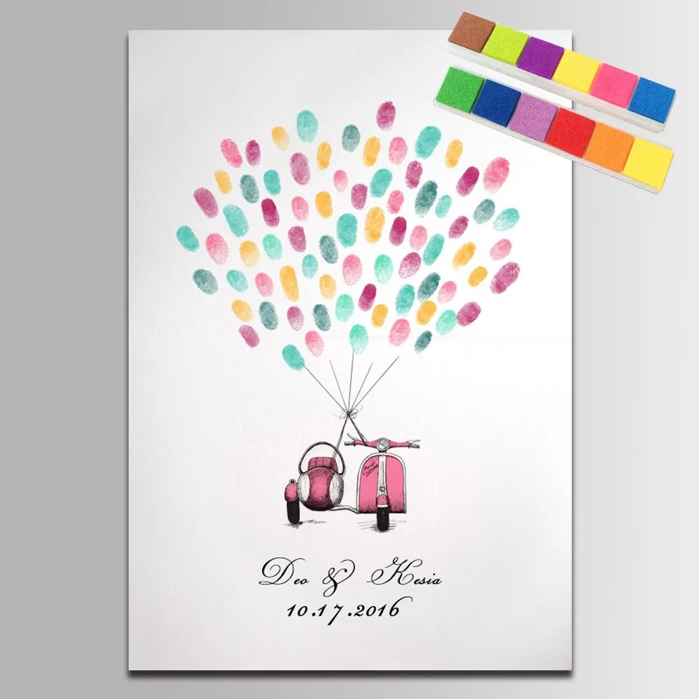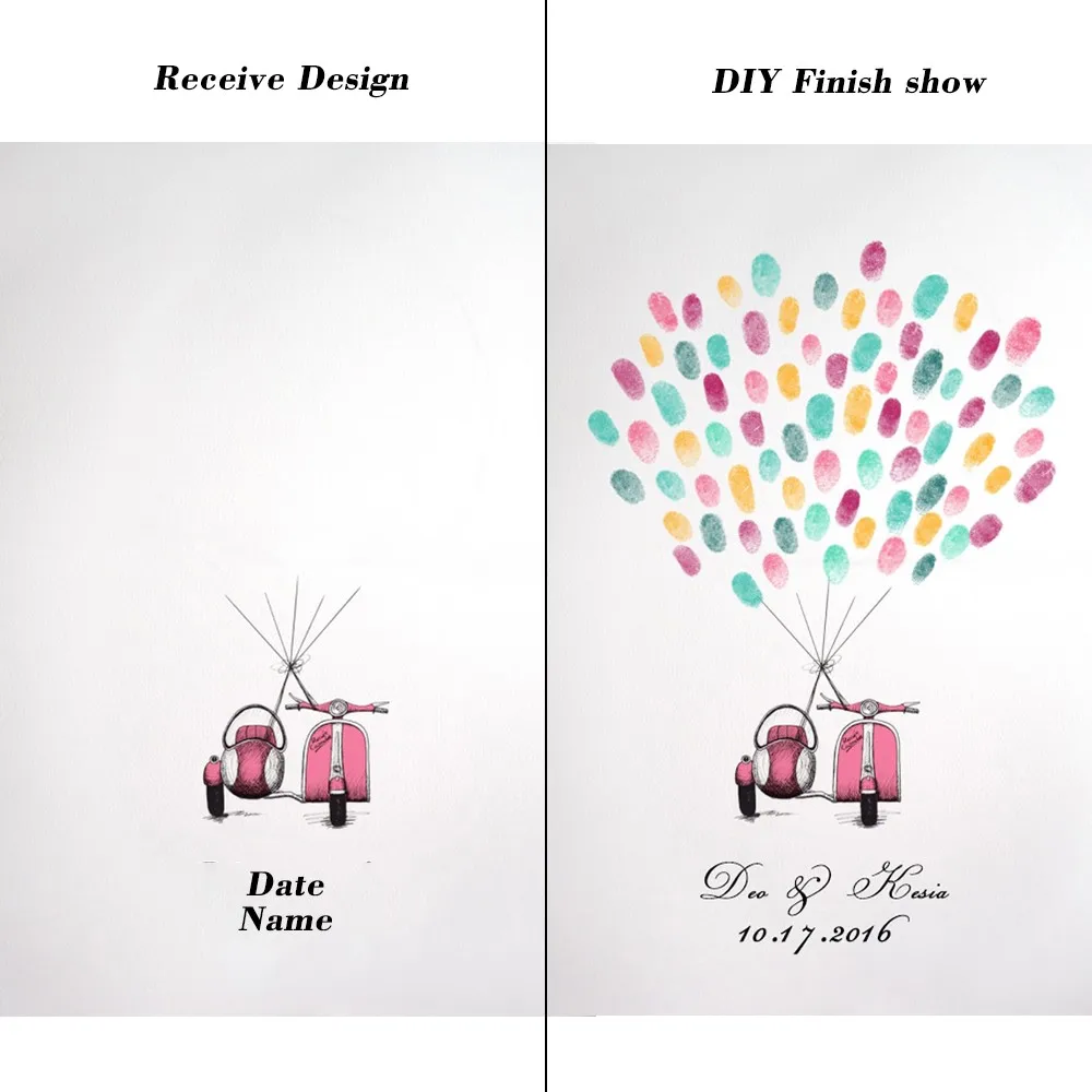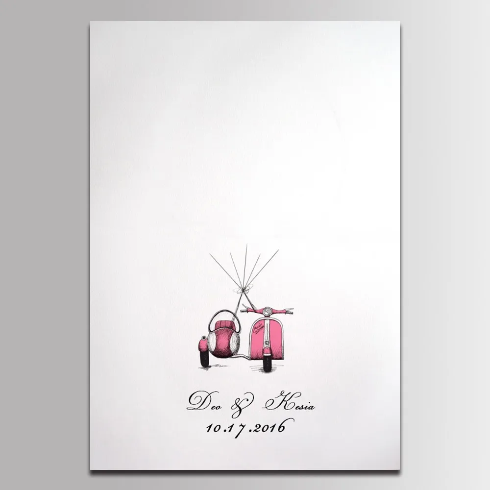 HOT SALE Personalized Wedding Guest Book Fingerprint painting Pink Motorcycle Canvas Prints Party Decor Wedd