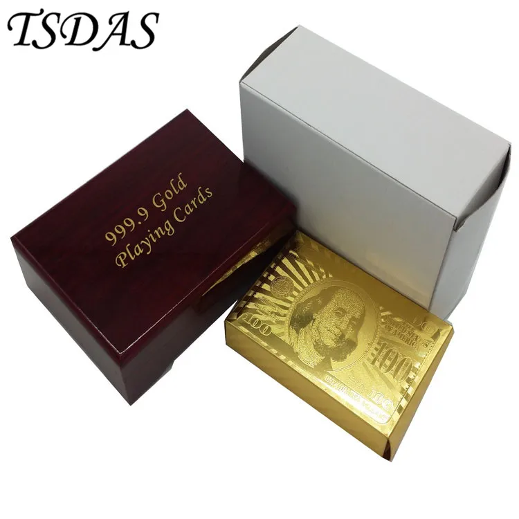HIGH QUALITY Poker 24k Gold Playing Cards Regular Index US $100 Poker Card with Certificate and Red Wooden Box f