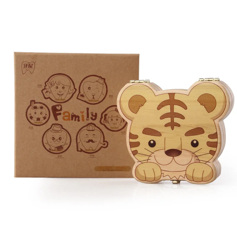 HIGH QUALITY Cute Naughty Tiger-Wooden Cool ya wu Baby Souvenir Baby Teeth Box Birthday Gift Wholesale
