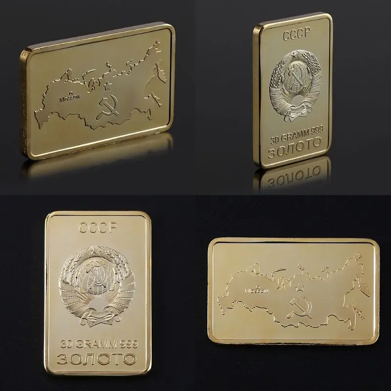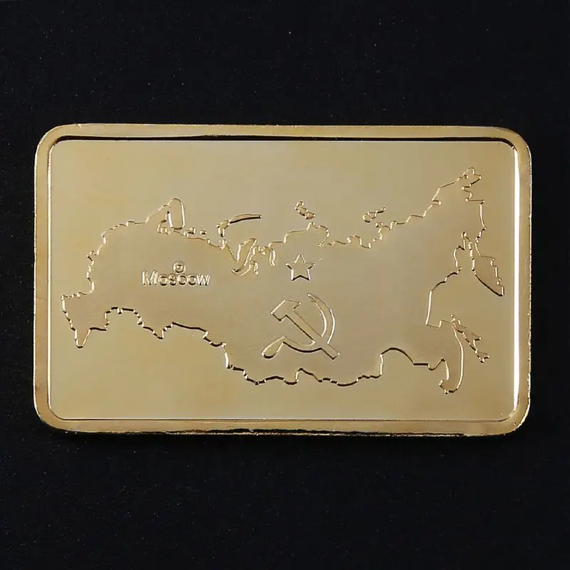 BEST USSR Soviet National Emblem CCCP Gold Plated Bullion Bar Russian Souvenir Coin M4YD